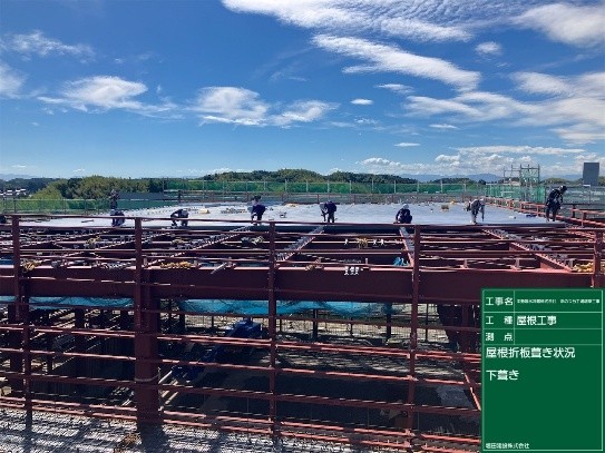 10月は屋根葺き、土間・スラブのコンクリート打設を行いました。